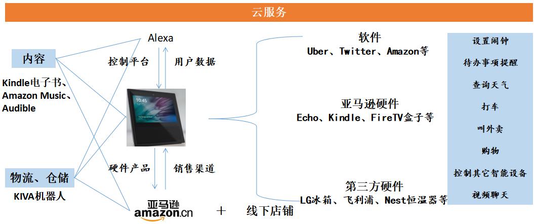 2.亞馬遜具有深厚的電商基礎(chǔ),并在內(nèi)容、硬件、平臺(tái)、云計(jì)算、物流倉(cāng)儲(chǔ)等領(lǐng)域布局,通過(guò)智能音箱整合軟件+硬件+平臺(tái)+內(nèi)容資源,進(jìn)一步盤活電商資源。