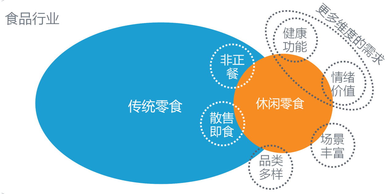 目前行業(yè)專家和資深從業(yè)者,往往認(rèn)為“休閑零食”和“休閑食品”,甚至是“零食”這樣的產(chǎn)品概念雖然互有區(qū)別,但某種意義上又是互相交融的,畢竟不同的概念也處在不停的變動中,舊的概念在升級,新的概念在擴展: