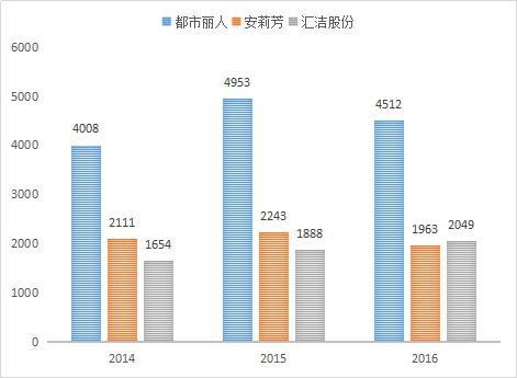 考慮到使用萊卡材料內(nèi)衣企業(yè)主要是中高端企業(yè),企業(yè)占市場份額較大,數(shù)據(jù)可獲取等因素,本部分主要針對中高端內(nèi)衣企業(yè)安莉芳集團(以下簡稱為:安莉芳)、深圳匯潔集團股份有限公司(以下簡稱為:匯潔股份)、大眾性企業(yè)廣東都市麗人實業(yè)有限公司(以下簡稱:都市麗人)進行分析。