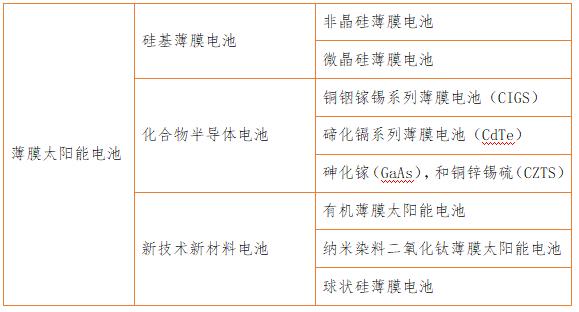 (三)薄膜太陽能電池分類