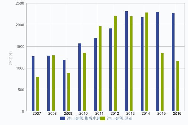 中國芯片和原油進(jìn)口金額