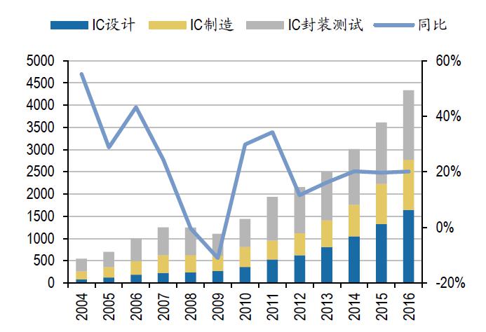 2016年中國集成電路產(chǎn)業(yè)繼續(xù)高速增長的勢頭,從半導(dǎo)體行業(yè)協(xié)會的2017年最新統(tǒng)計,2016年中國集成電路產(chǎn)業(yè)銷售額高達(dá)4335.5億元,比2015年增長20.1%。