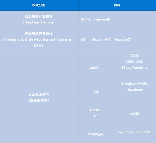 全球集成電路領(lǐng)域的產(chǎn)業(yè)模式分為: